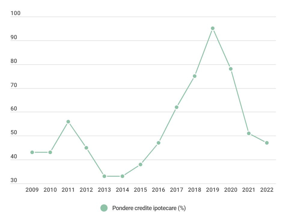 2022 este al treilea an consecutiv în care ponderea creditelor ipotecare este în scădere;