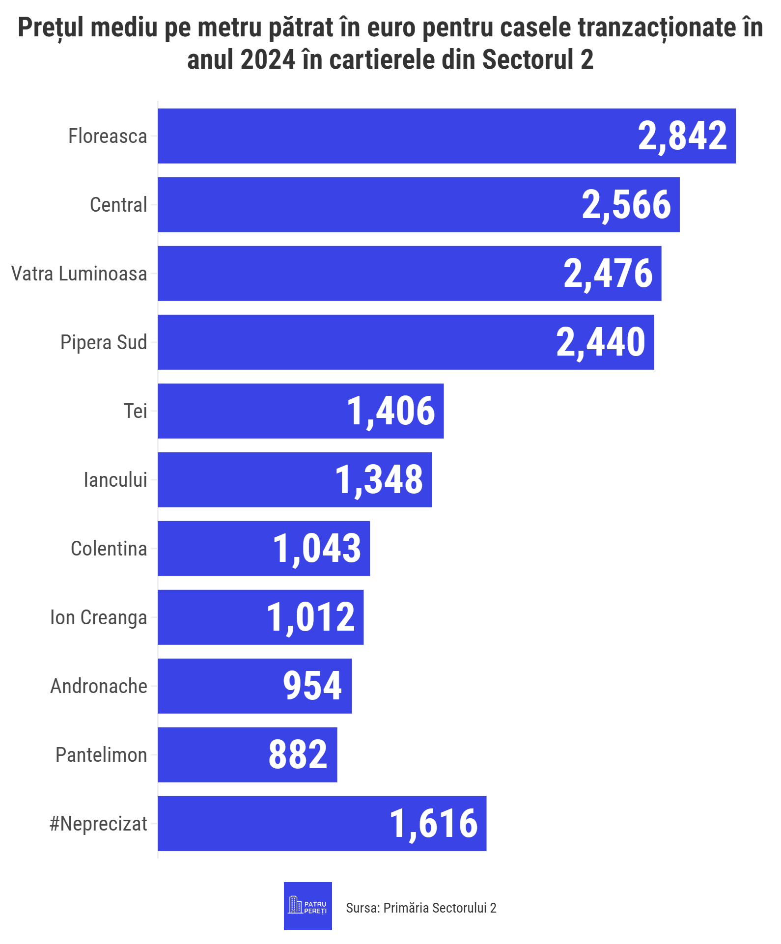 Datele pe care le-am analizat arată că prețurile medii din cele mai scumpe cartiere ale Sectorului 2 sunt de peste două ori mai mari decât prețurile din cel mai accesibil cartier. Astfel, prețurile au variat de la aproape 1.400 de euro pe metru pătrat util în cartierul Pantelimon la aproximativ 2.800 de euro în zonele Pipera Sud și Floreasca.